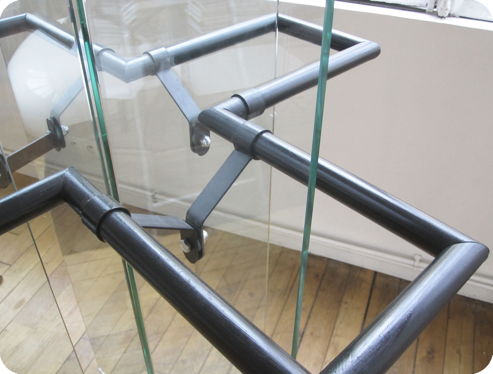 Cinq verres trempés, main courante en métal